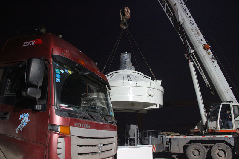 兩臺(tái)科尼樂立軸快速攪拌機(jī)CMPS4000發(fā)貨。如火如荼的吊裝現(xiàn)場。